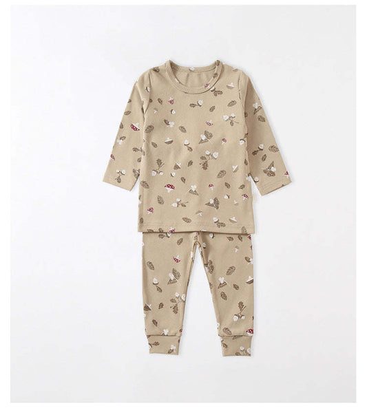 Kids Print Pattern Round Collar Long Sleeved Top Combo Pants Soft Sets Home Clothes In Summer